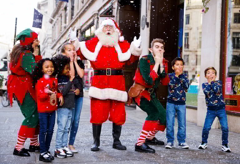 在英國首都倫敦,哈姆雷玩具店(Hamleys toy store)公布完今年的聖誕節十大玩具後,特別開放讓孩子們與聖誕老人、聖誕精靈們一起合照。