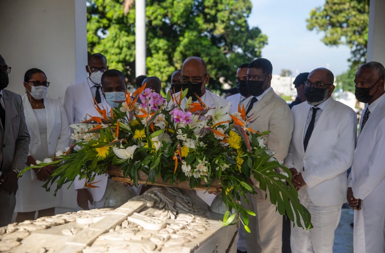 幾個小時後,海地惡名昭彰的黑幫領袖舍里澤(Jimmy Chérizier)便率領著大批群眾穿越太子港,來到總理亨利到不了的那尊德薩克雕像下,奉上了自己的花束。
