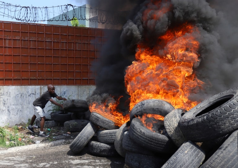 面臨著逐漸失控的國家,有一些海地人於本周一(18)走上街頭示威,他們燃燒輪胎、用路障封鎖道路,太子港部分商店甚至發動罷工,全國至少有八個城鎮的示威者要求政府表態,希望它們能打擊日益強大的幫派勢力。