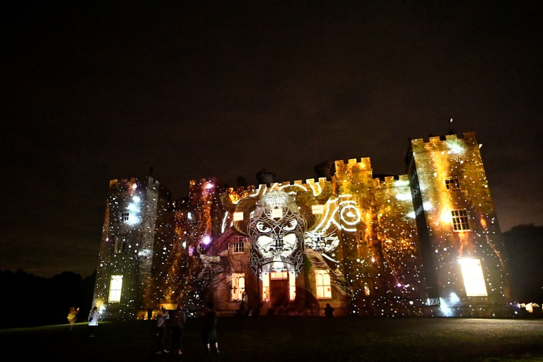 在愛爾蘭米斯郡(Meath)的小鎮斯萊恩(Slane),人們站在斯萊恩城堡(Slane Castle)前,欣賞著主辦單位為了慶祝古代凱爾特人(Celtic)節慶「薩溫節」(Samhain)所舉辦的燈光秀「普卡」(Puca)。