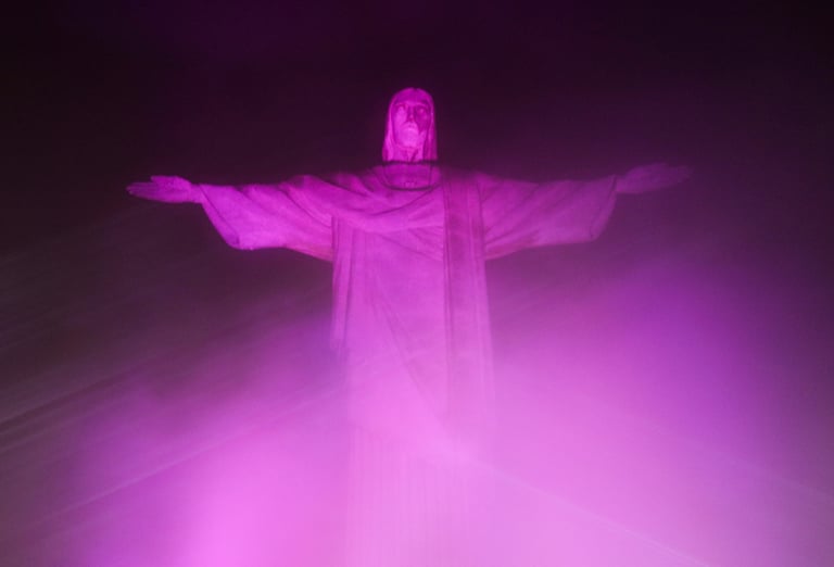 在巴西大城市里約熱內盧(Rio de Janeiro),全球知名的地標救世基督像(The Christ the Redeemer)已經打上了粉紅色光芒,響應十月的全球乳癌國際乳癌意識月(Breast Cancer Awareness Month)。