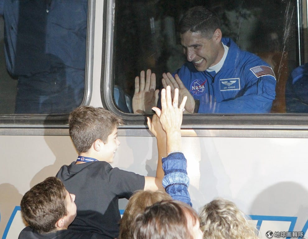 路透社霍普金斯在9月時登上國際太空站,行前與家人道別。