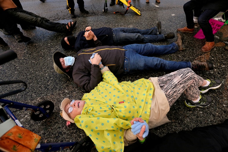 在加拿大英屬哥倫比亞省的溫哥華國際機場(Vancouver International Airport)附近,環保組織「滅絕反叛」(Extinction Rebellion)的支持者在機場外發動示威,堵住了通往機場的道路。