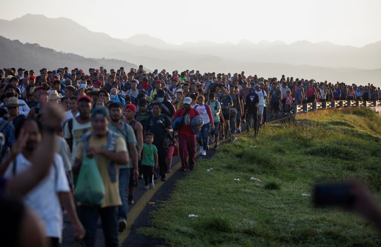 在墨西哥恰帕斯州(Chiapas)的胡伊席特拉鎮(Huixtla),來自中美洲的移民們不斷朝著墨西哥首都墨西哥城前進,希望能在那裏獲得庇護資格。