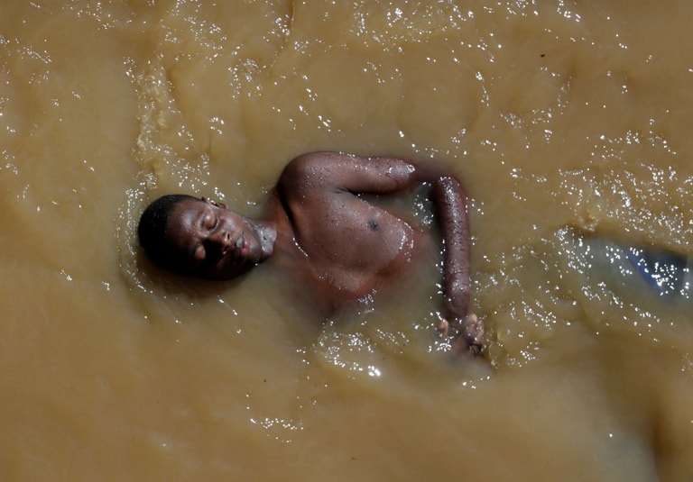 在南方恰帕斯州(Chiapas)市鎮胡伊席特拉(Huixtla),一位移民在河中漂浮,享受難得的休憩時光。待會,他便要繼續踏上旅程,跟隨其他來自中美洲和海地的移民一起往北移動,前往墨西哥首都墨西哥城(Mexico City)申請庇護許可和難民身分。