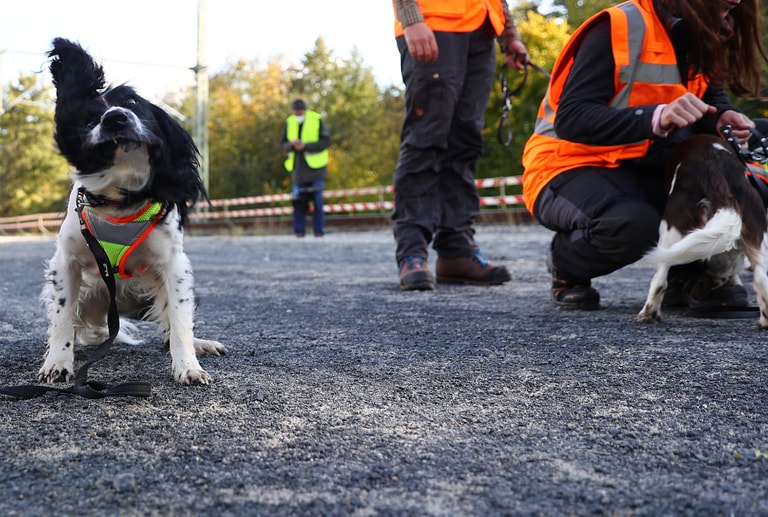 在法蘭克福(Frankfurt),嗅探犬「暴風」(Storm)與他的人類夥伴一起來到德國鐵路(DB)的下一個鐵路興建預定地,準備用牠的鼻子進行示範,找出附近有沒有需要被轉移到安全棲息地的保育類動物。