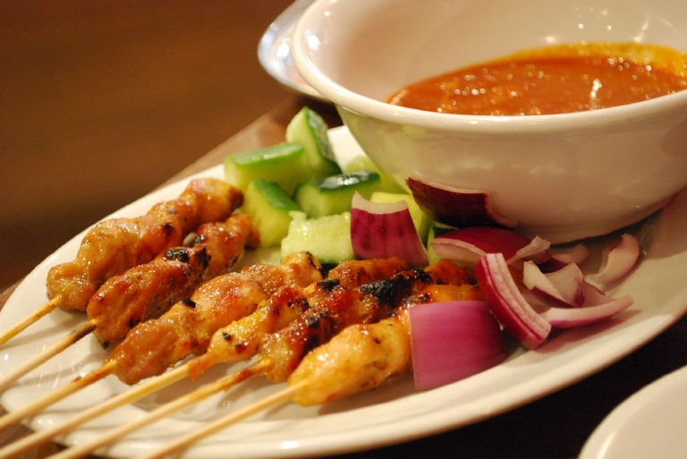 在臺灣光復前,並沒有「沙茶醬」這玩意兒。光復後,由相繼來臺的廣東汕頭人開始製造,才逐漸普遍,於是到處可以看到「沙茶牛肉」、「沙茶火鍋」一些搶眼的招牌。「沙茶」原名「沙爹」,是馬來話,因閩南語「茶」的語音念「ㄉㄧㄝ」,所以「沙茶」這名稱是閩南語(包括汕頭話)的譯音,如果以國語或廣州話的譯音就又不對勁了。(註1)