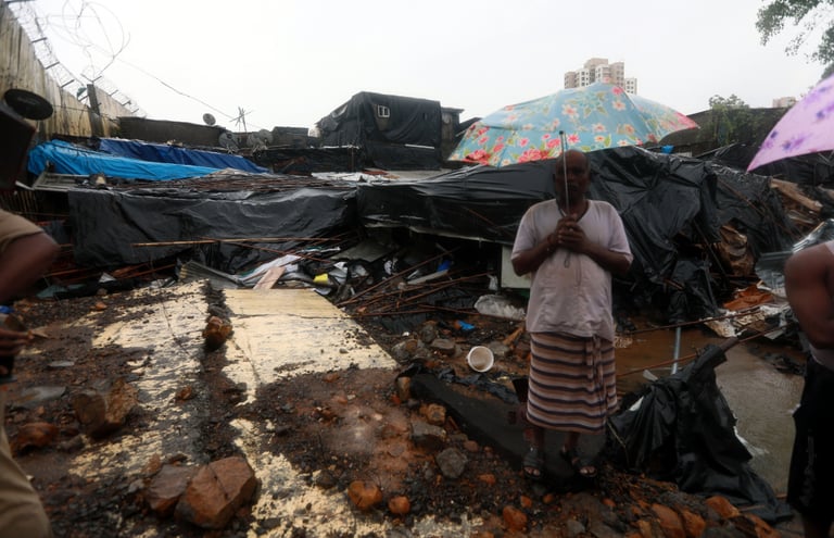 這天,強烈的季風風暴為印度西部帶來了強降水,馬拉德一道曾守護貧民窟度過無數次風雨的混凝土擋土牆,則在這次的洪水中不堪雨勢而倒塌,除了造成 20人死亡以外,高牆倒下也象徵著不同於以往強度的極端氣候已經來臨。