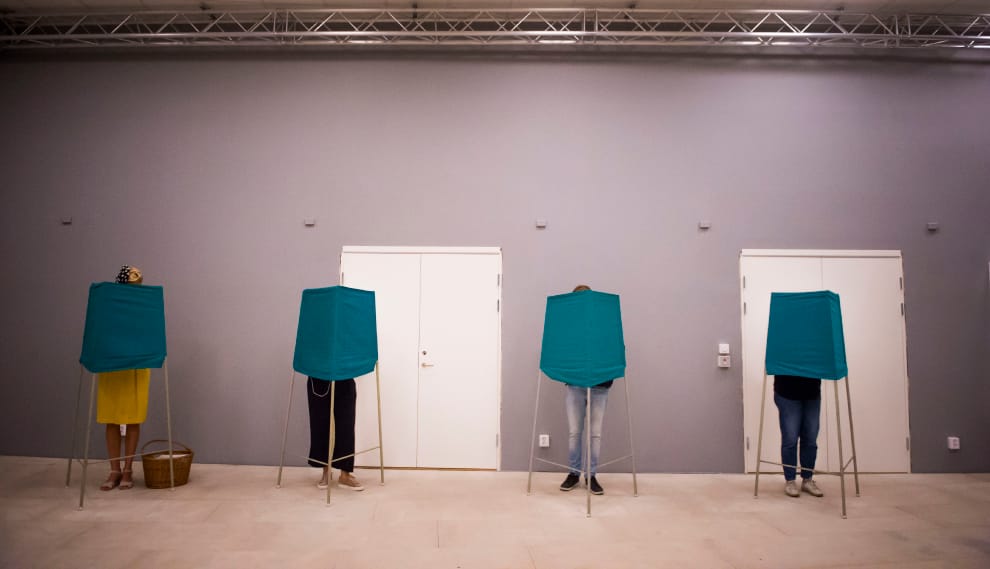 目前,尚無人可以肯定瑞典當前各黨難以達成共識的局面短期內是否得以解決,最遲選民或許得等到明年大選的時候,才有機會用手上的選票,解決政客間的政治歧異。圖為 2018年瑞典選民正在投票所中投票。