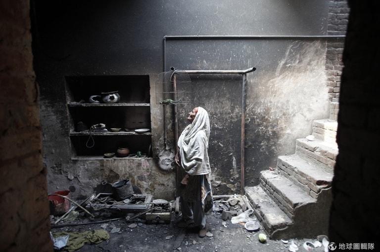 68歲的阿茲拉(Azra)站在家中,她看著已經死掉的寵物鳥,阿茲拉在拉合爾市區的家在兩天前遭到暴民放火焚燒。