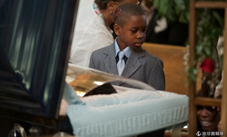 小羅尼(Ronnie Chambers Jr.)看著昏倒在一旁的媽媽,眼前的棺木躺著的是他的爸爸羅尼錢伯斯(Ronnie Chambers),錢伯斯在一場槍戰中喪生。