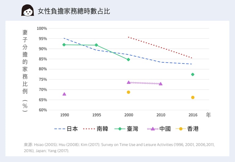 不只在臺灣。「育兒家事=太太媽媽」,這個如影隨形的標籤,普遍存在於東亞國家。