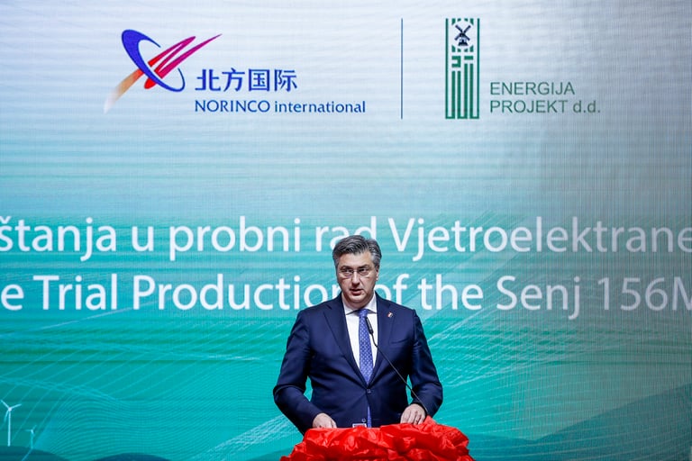 直到如今,中國在中/東歐地區依舊有許多投資案正如火如荼地進行當中。圖為去年12月,克羅埃西亞總理普蘭科維奇(Andrej Plenković)在森吉風力發電廠(Senj wind farm)啟用典禮上致詞的照片,這座發電廠正是在中國廠商的協助下才得以順利完工。