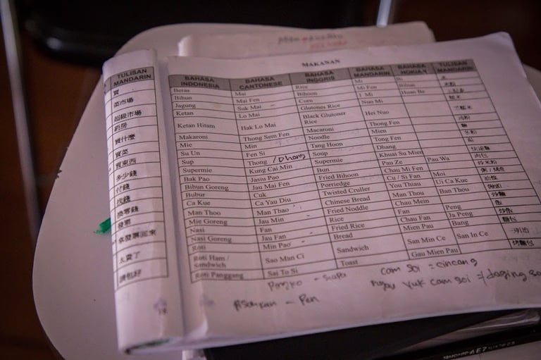 當天,由兩位機構內的中文老師接待我們,她們兩位都是印尼人,一位曾經在台灣唸研究所、一位曾經在台灣從事九年的看護工作。他們告訴我們,這是一所以「家庭看護」為主的仲介訓練所,所以在這裡,清一色都是女生。目前包含他們在內,共 3 位的老師,會教這裡 300 多位即將出國的移工語言和照護知識。