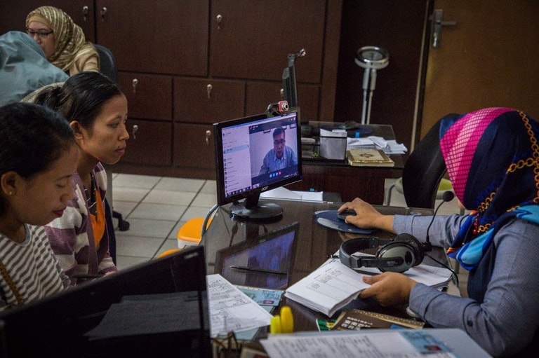 根據印尼政府勞工部的規定,凡是第一次來台灣工作的家庭監護工,都必須由印尼當地的仲介公司進行為期 600 個小時的密集訓練,內容包括中文聽/說能力、照護技巧、家事訓練等等。受訓完畢後,再由印尼勞工部頒發證明,才能憑證明搭機出國工作。