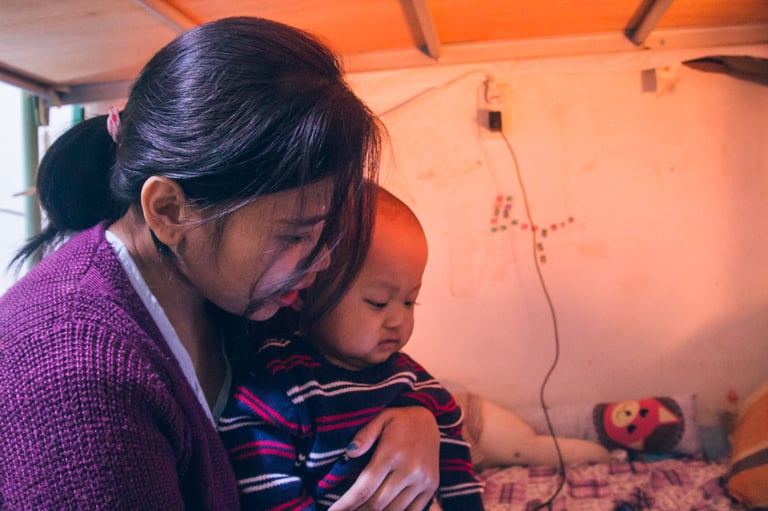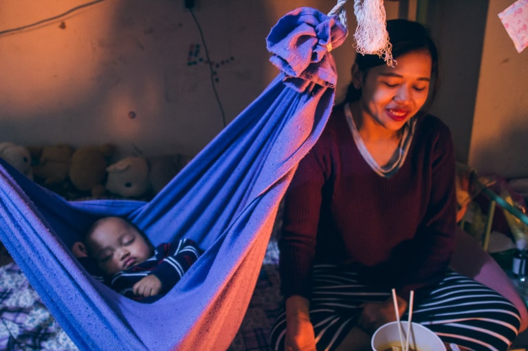 逃跑後的生活,得到了行動上的自由,卻換來被整個社會禁錮的壓力。Aya 坐在床沿,一手抱著十一個月大的孩子 Bima,倚著微弱的暖爐,黃光照耀在她的側臉,一顰一笑都特別暖和,「 一開始都會很害怕,在外面買便當看到警察,都會想說:『他們是不是要來抓我?』後來都會裝沒事,但其實我們自己心裡都會很擔心。」擔心被查獲的心境,如同揮之不去的夢魘一般,就連睡覺都會夢到,更何況還帶上了一個尚未學走的孩子。