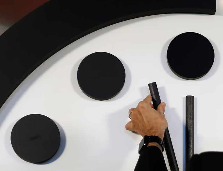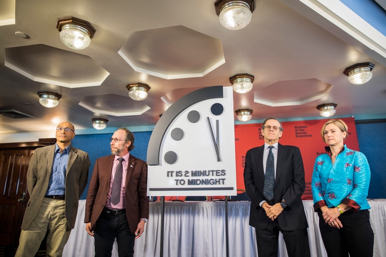 「以前末日之鐘是以『分』為單位移動;現在則是以『秒』為單位了。」克勞斯說道:「很明顯,末日之鐘並非一個精準、量化過的科學評估,而是一個質化指標。重點是末日之鐘移動了,而不是末日之鐘究竟移動了多少。」