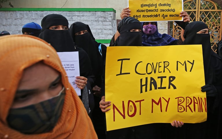 在印度南部卡納塔卡邦(Karnataka)的多所校園中,近日發生了多場穆斯林學生對頭巾禁令的抗議活動。學生們聲稱戴頭巾上學是他們的權利,因此紛紛上街遊行,但同時卻也引發了部分印度教人士的不滿,街頭屢屢傳出雙方互擲石塊、縱火,甚至還傳出有警察進入校園朝群眾噴灑催淚瓦斯的事件。