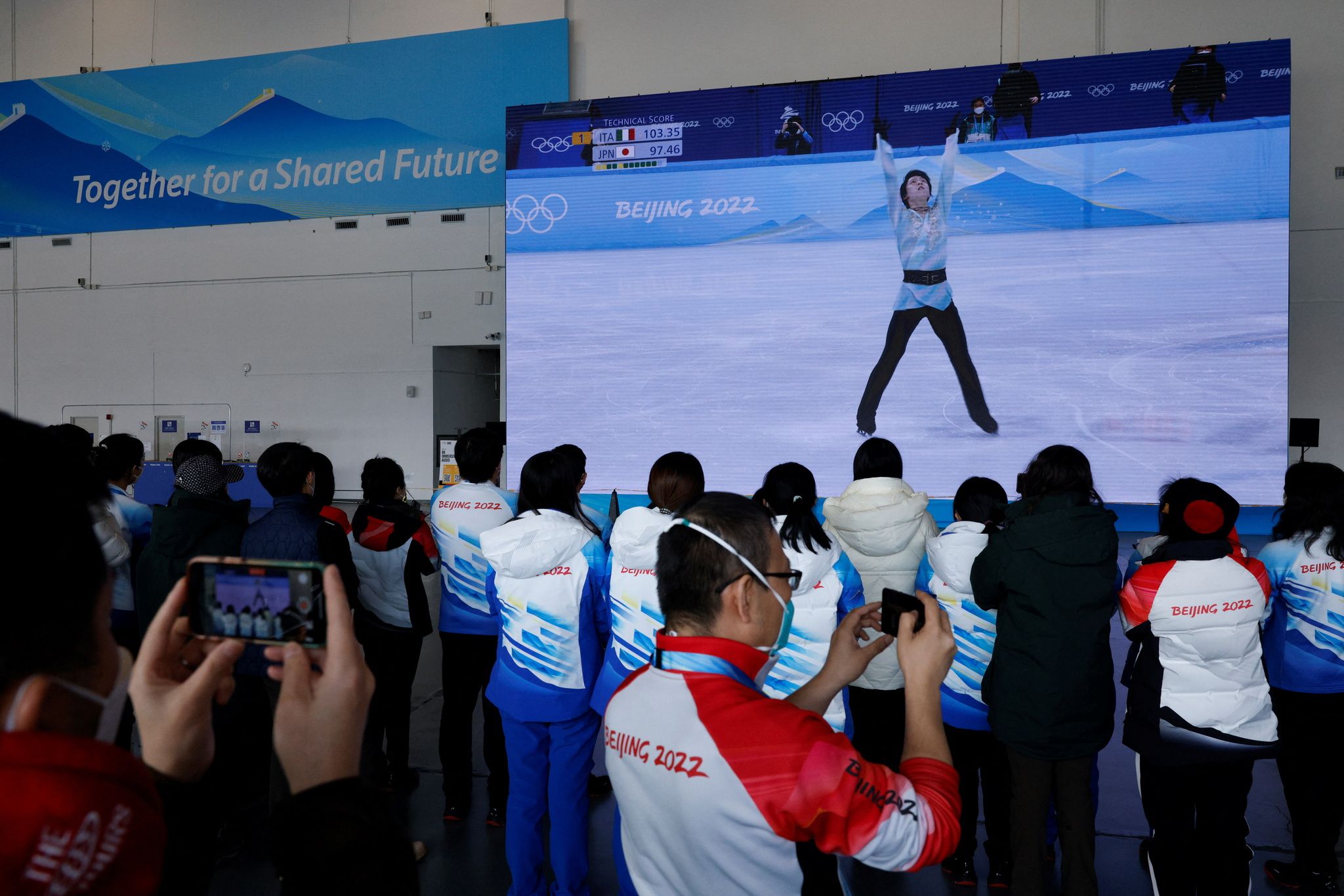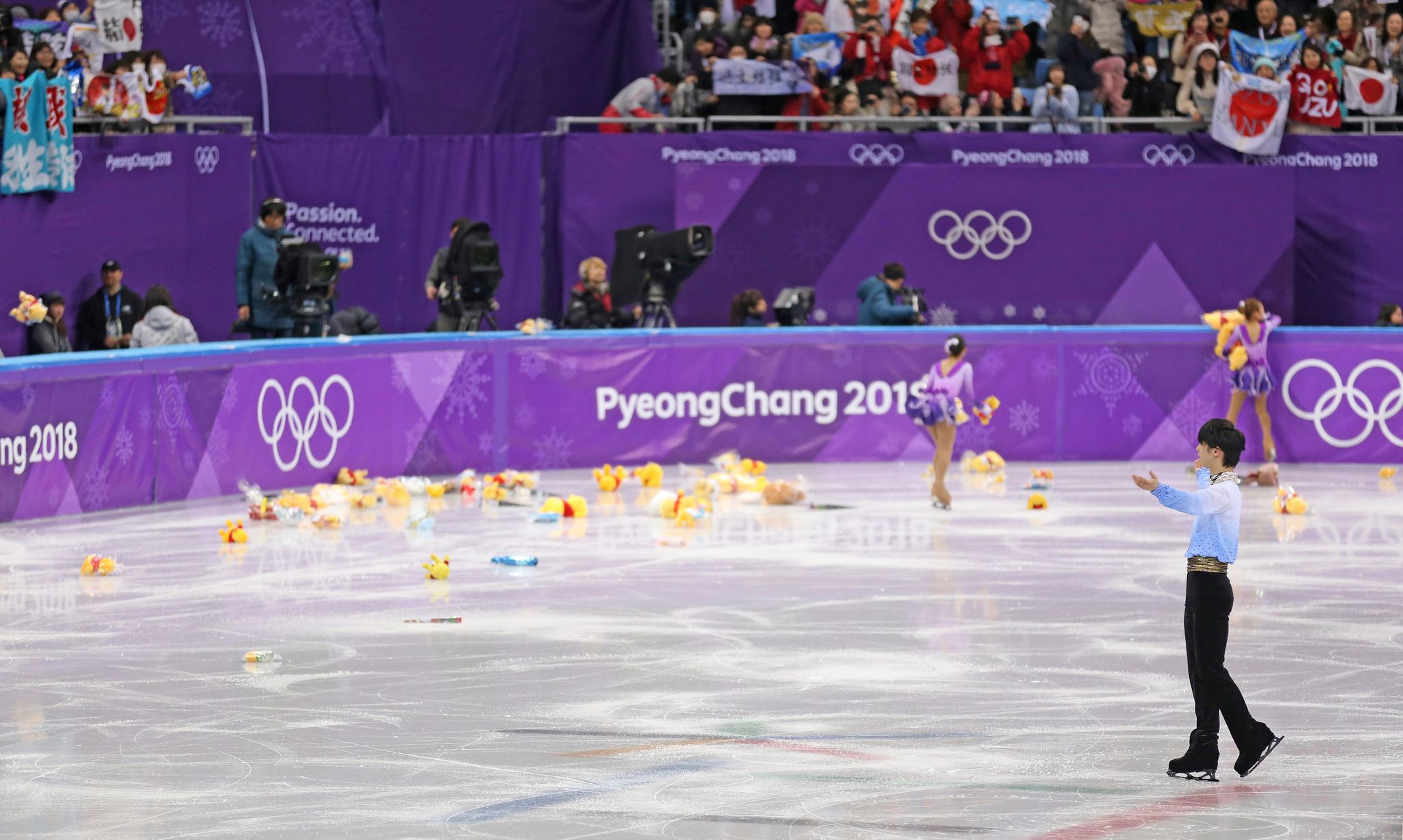 照片攝於2018年平昌冬奧,粉絲們在羽生比賽結束時向場內大量拋撒羽生最喜愛的小熊維尼玩偶,不過「小熊維尼雨」無緣在本次北京冬奧重現。