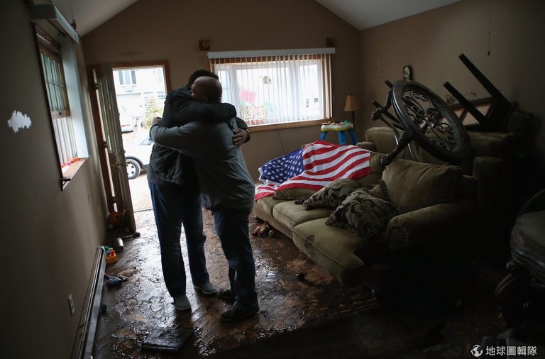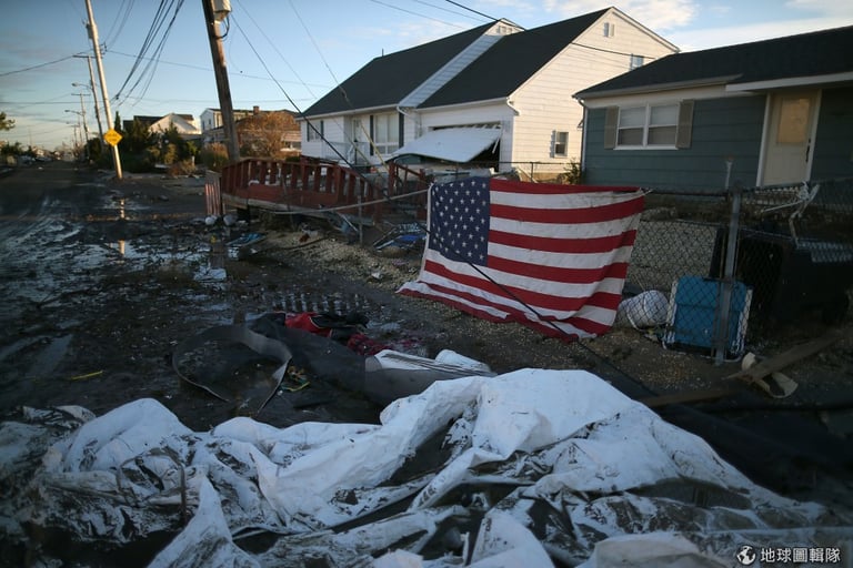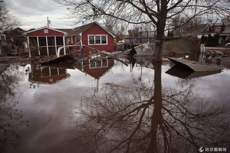 紐澤西的房舍仍泡在汪洋大水中。圖片來源:Mario Tama/Getty ImagesJohn Moore/Getty Images
