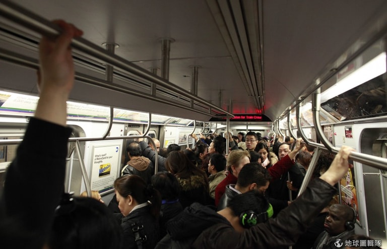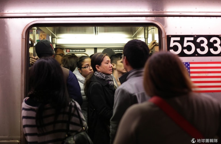 總量控管的地鐵系統,大家只能硬擠得搭上車。圖片來源:Allison Joyce/Getty Images