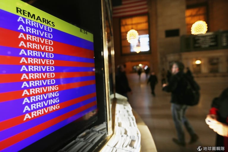 中央車站的時刻表,顯示了部分可以搭乘的地鐵系統。圖片來源:Mario Tama/Getty Images
