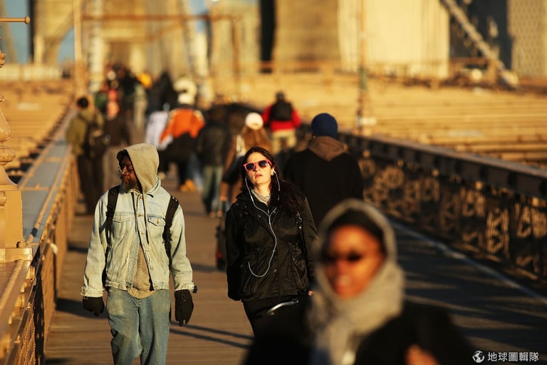 布魯克林大橋上,開始恢復正常生活步調的紐約客們!圖片來源:Spencer Platt/Getty Images