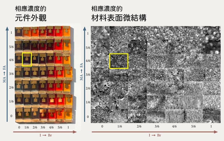要做出好的鈣鈦礦材料 MAyFA1−yPb(BrxI1−x)3 必要條件之一:「降低 Br 和 MA 的摻雜濃度,盡量讓材料維持單一固溶相」。