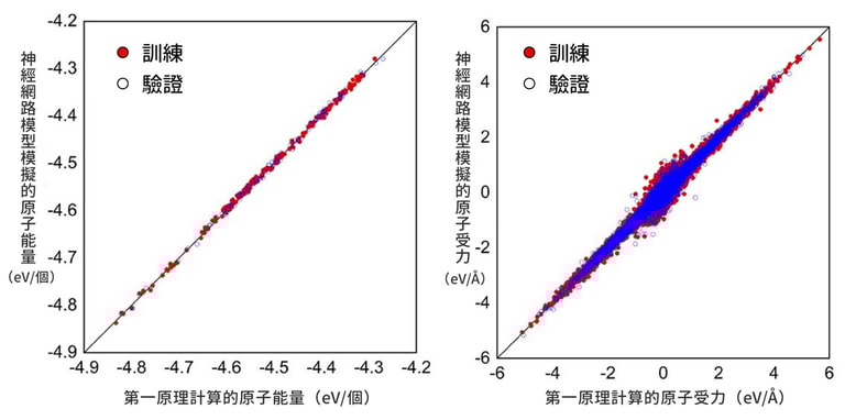訓練神經網路模型時,包淳偉採用第一原理計算的結果當作機器學習素材,並設計函數進行反饋校正,直到預測的原子能量誤差遠小於熱擾動。