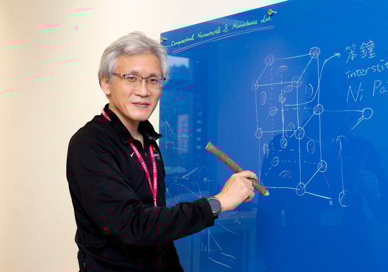 不過,一直反覆試誤並非好方法,畢竟每做一次實驗就是一次成本。因此,科學家也設法從理論模擬著手,包淳偉強調「模擬的好處是可以在電腦空間中創造一個最純淨的系統。」,而原子尺度模擬,更可以達到原子級的解析度,提供許多實驗無法量測的資訊。