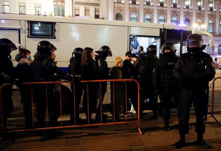 獨立人道媒體OVD-Info指出,昨日(6)的一場抗議活動中,有4,300位以上的民眾分別在俄羅斯的56個城市中遭到警方拘捕。