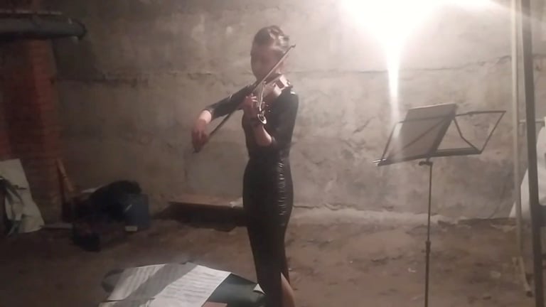經歷了長達一周不見天日、令人心驚膽戰的避難生活後,萊托夫琴科決定要為她情同家人的夥伴們提振一下精神──她換上了表演的服裝、拿出了小提琴和譜架,在地下室裡開了一場小小的演奏會。