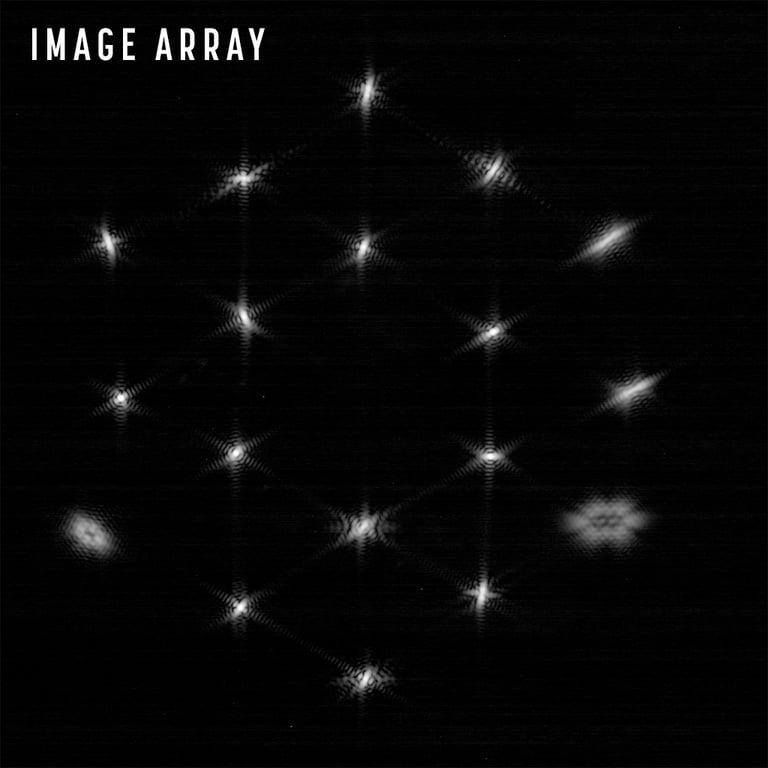 第一次調整後,韋伯望遠鏡拍攝的的目標物體是 HD 84406 恆星,為了在茫茫星海中找到它,望遠鏡對準預測區域的 156 個不同位置生成 1,560 張圖像,然後不斷篩檢直到 HD 84406 恆星各自出現於 18 個鏡面的圖像中,最後拼接這 18 張照片成一張圖,見下圖有 18 個光點,即代表 18 個分鏡各自拍攝到的 HD 84406 恆星。