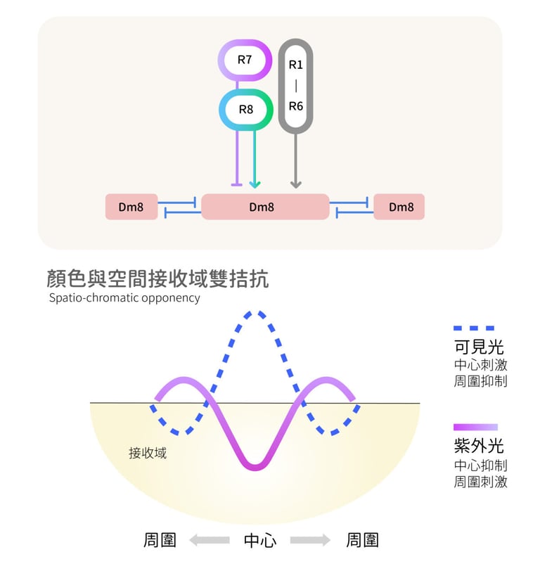 「這種神經迴路能解析、比較兩個顏色強度的差異性,因為大部分在視覺上最重要的正是對比。拮抗運算模組能在一片訊號裡找出哪裡最強、其他較弱。其他感官機制也一樣,像觸摸物品時有凸出來的部分較重要,聽覺上要找出哪個聲音特別高等,讓最重要的訊號能凸顯出來。」李奇鴻補充道。