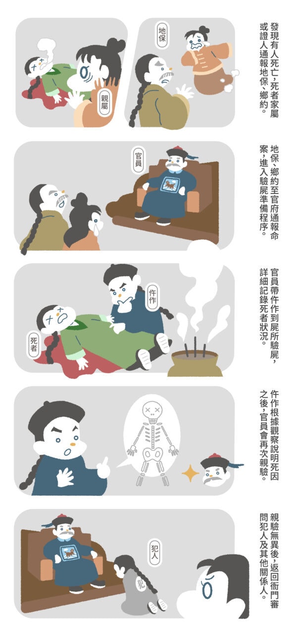 一件命案從偵察到審判相當耗時費神,從發現屍體、驗屍到審問必須經過層層環節。清代怎麼驗屍?和現代有什麼不一樣?讓我們繼續看下去。