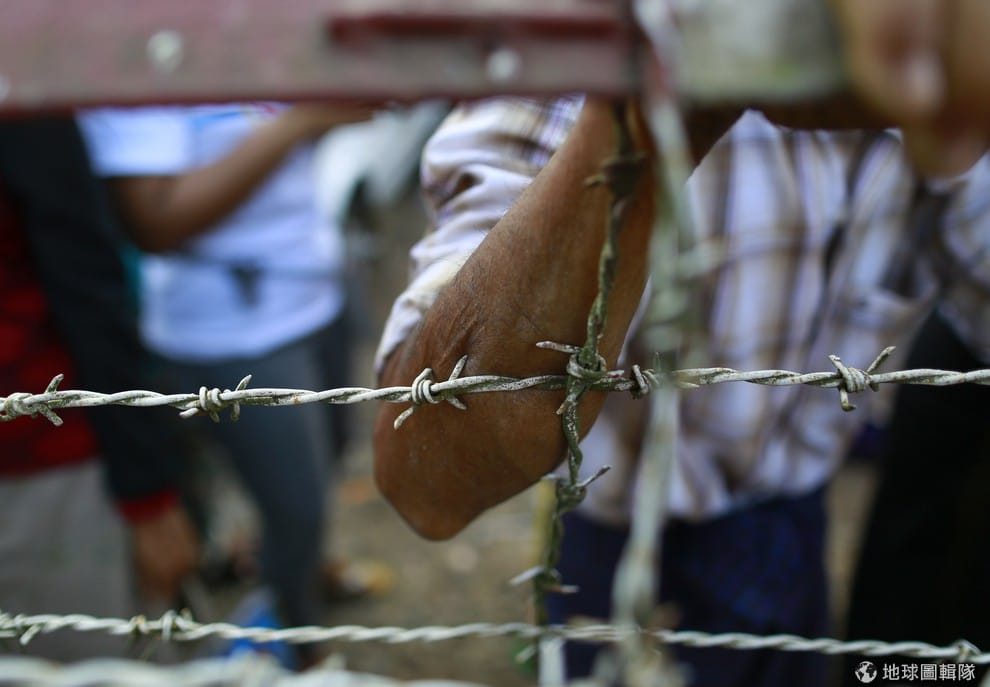 一名男性站在音山監獄(Insein prison)的柵欄旁,他正在等待家人從監獄中釋放。周四(2)時,緬甸現任總統登盛宣布大規模的特赦法,並讓原判死刑的犯人改為終生監禁,40年以上有期徒刑者改為40年徒刑,刑期在40年以下的人犯的刑期皆縮減1/4的時間。本周六是緬甸的獨立紀念日。
