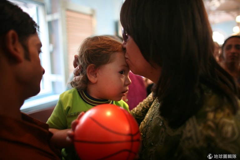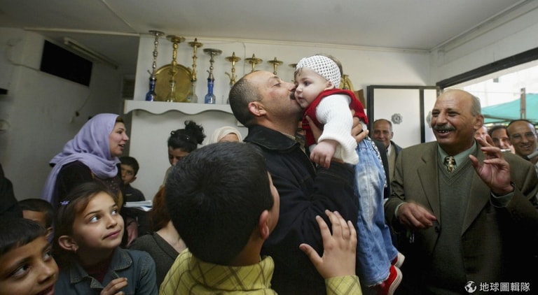 約旦的兩兄弟,對媽媽親親抱抱,很開心!圖片來源:Chris Hondros/Getty Images