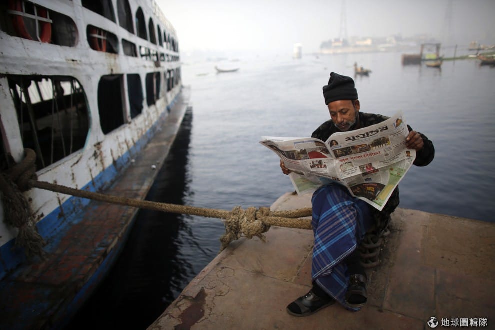 一名男性正看著當地的報紙,上面正在報導周日的國會大選,以及投票所遭到縱火等衝突事件。這次的大選由孟加拉的執政黨「孟加拉國人民聯盟」所主導,遭到在野黨強烈反對杯葛。投票日前夕開始,反對黨的支持群眾與警方發生衝突造成10多人死亡。