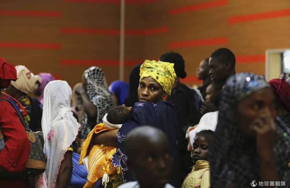 一名女性抱著孩子站在人群中,她與其他人因為中非共和國的動亂逃出家園,他們擠在移民局中等待離境的機會。由於基督教和伊斯蘭教的軍方衝突,中非共和國的動亂始終未見趨緩跡象,目前根據聯合國難民署的調查,就顯示已經有935萬人因為衝突無家可歸,必須四處流浪找尋棲身處