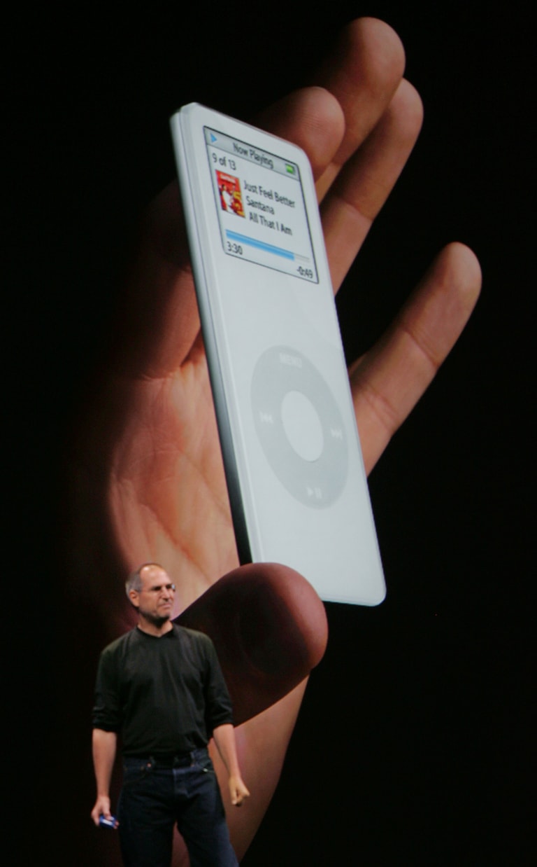 iPod首次登場在2001年,是當時第一款能夠儲存1,000首歌曲的MP3播放器,機身只有185公克重。在那個隨身聽還未普及、大部分人要聽音樂還得仰賴CD的年代,輕巧的iPod是個讓人眼睛為之一亮的產品。