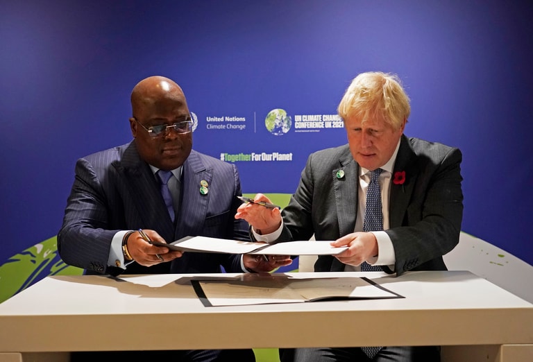 不過,在剛果政府決定拍賣30個區塊的油氣探勘權前,2021年11月,齊塞克迪曾參與在英國舉辦的第26屆聯合國氣候峰會(UN Climate Change Conference 2021,COP26),與各國政治領導人站在一線,簽署一項為期10年保護剛果盆地森林的協議,國際也為此承諾會在前5年提供剛果經濟上的援助,每年以5億美元(約新台幣150億元),支持剛果持續減少對森林的砍伐與減緩在盆地內棕櫚油種植園的擴張行動。