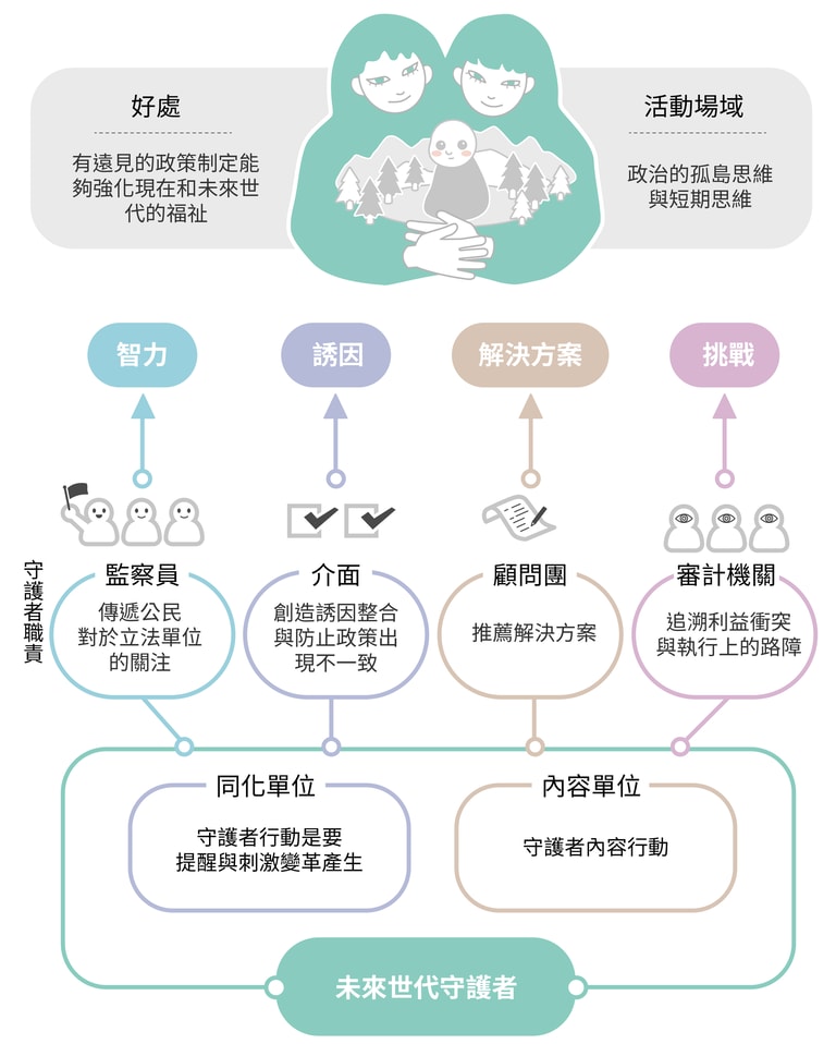 那麼,我們能否設計出因應此缺陷的監督機制?來看看其他國家如何在體制內設計守護未來世代的機制。