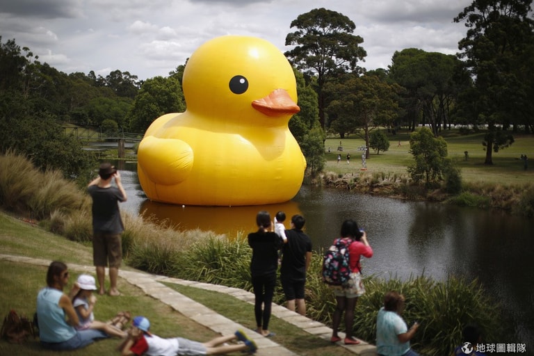巨型的黃色小鴨現身在雪梨的帕拉瑪塔河上,9號到26號期間,是雪梨當地的年度藝術節,這次主辦單位就邀請已經在2013年1月出現過的黃小鴨進駐到藝術節中