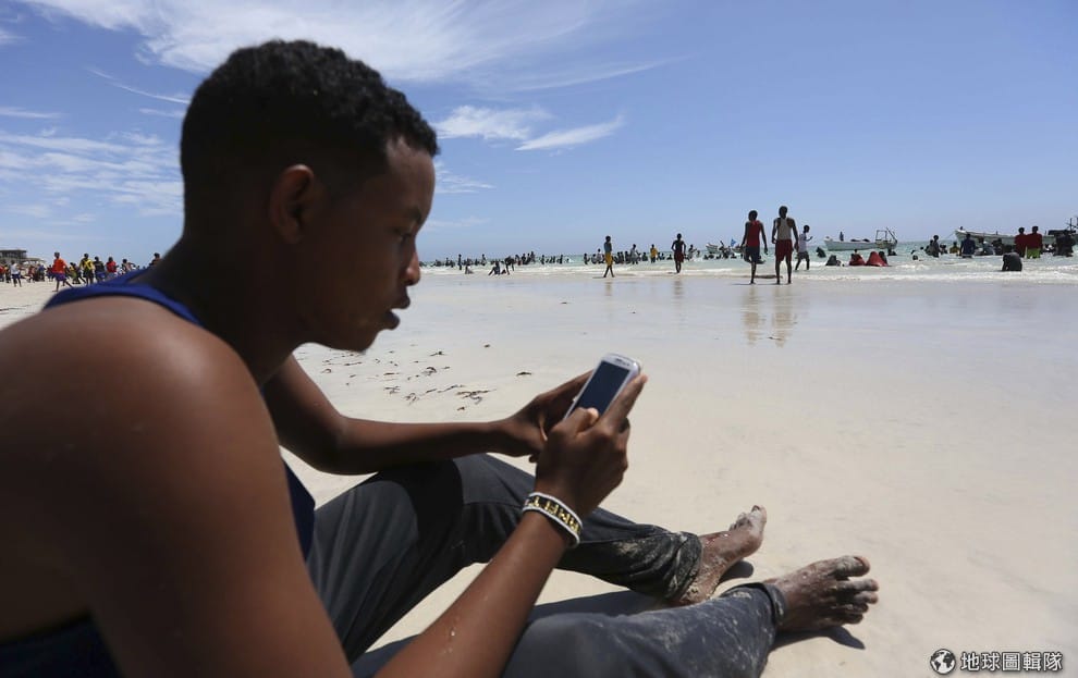 照片中的男子正在用手機上網,他正面對著印度洋。索馬利亞激進組織「青年黨」(al Shabaab)近期在網路上宣布,將要禁止索馬利亞半島地區的人民使用網路,並給當地的電信商15天的緩衝時間。他們的聲明中就提到「任何公司或是個人如果無法遵守規範,將要面臨伊斯蘭律法(sharia)的處置。」