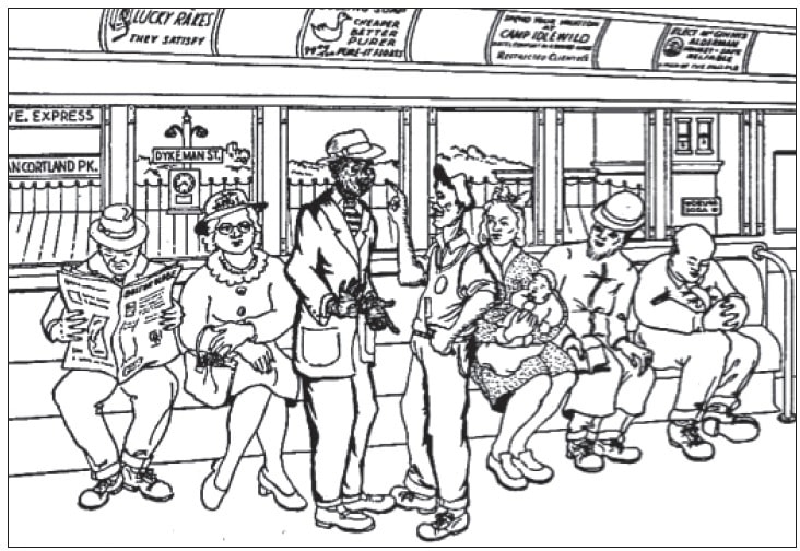 「同化」,指的是傳播資訊的人們,將內容整合成貼近自己的興趣、偏見、情感等的行為。站在中間的兩個人之中,拿著剃刀的是右邊的白人男性(拿在左手);但如果針對白人群體進行這個實驗,傳話的結果通常會是「拿著剃刀的人是左邊的黑人」,這是因為白人群體的「期望」改變了剃刀的持有人。
