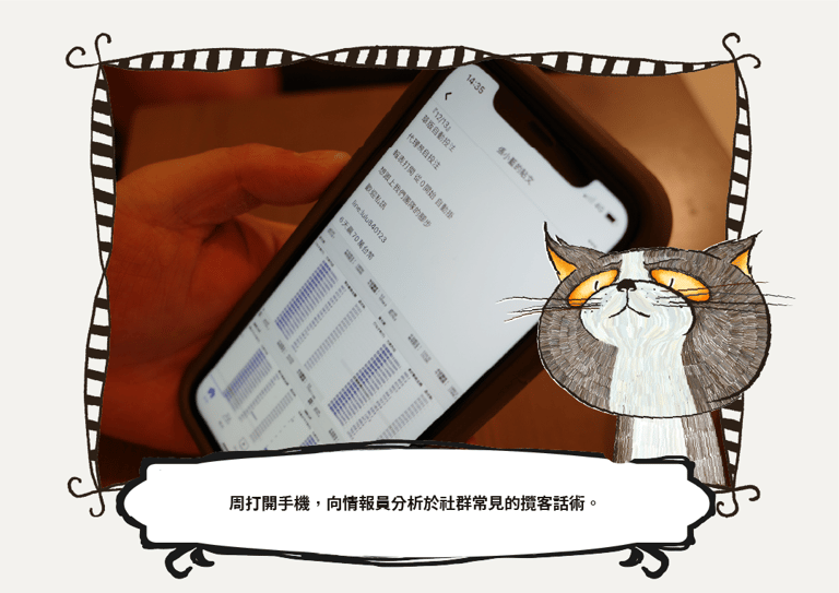 除了以利誘人上鉤,也有動之以情、以美色釣魚的吸客方式。利用現代人的空虛寂寞,在交友軟體上佈局,正妹不斷噓寒問暖、各種問候關心,投其所好的從本週氣象聊到政治風向,取得對方信任之後便開始推薦、推銷「我最近在玩這個(線上賭博),要不要一起玩?」或是「我報牌很準喔,你要不要試試看?」周笑說,這種釣魚的方法其實多是男性假扮的,有時為了取信於客人,還要造假正妹照片。