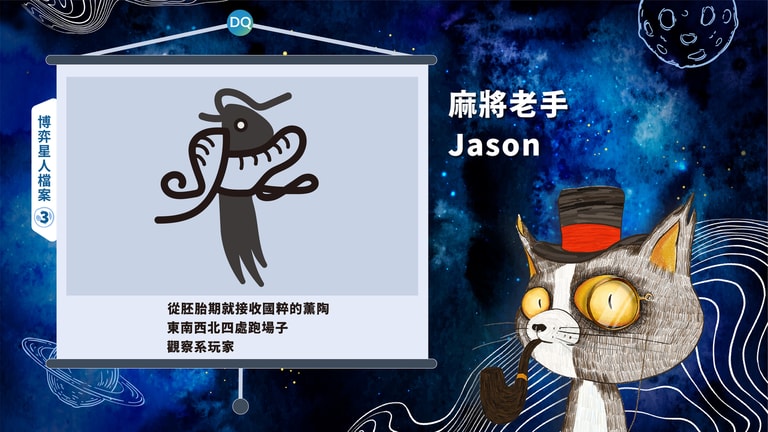 Jason稱自己還在媽媽肚裡的時候,就已經開始接受麻將的教育。「我媽在懷孕的時候還是會到處打麻將,去別人家的啦,去麻將館的啦都有。」Jason接著補充,不只媽媽,爸爸也很常去萬華一間老字號的麻將會館打牌「你去查就知道,那間老字號的很有名,被警察抓過很多次,到現在還在營業。」