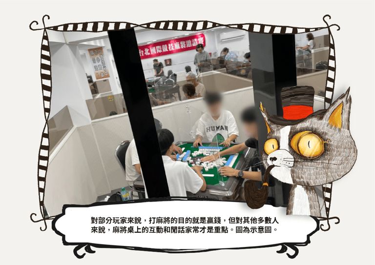 無論線上還是實體,多數時候麻將仍與賭博脫不了勾,但Jason並不認為自己是在賭博,當然也沒有賭癮。「朋友之間小玩幾千塊,不會冒很大的風險。」他說,但在消磨時間與贏錢的天秤上,並不是每個人都會選擇把麻將放在消磨時間秤上。
