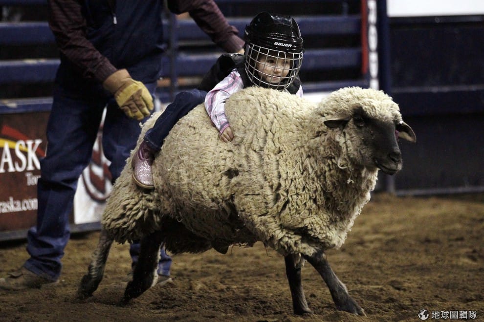 5歲的海莉(Haley Walker)緊抓在羊的身上,她正在牛仔節裡面的「小羊運動」競賽。丹佛市第108屆的「西部牛仔節」(National Western Stock Show)在周六時舉行,今年有超過15,000隻的牲畜聚集活動現場,這場活動會一路持續到本月26號結束。