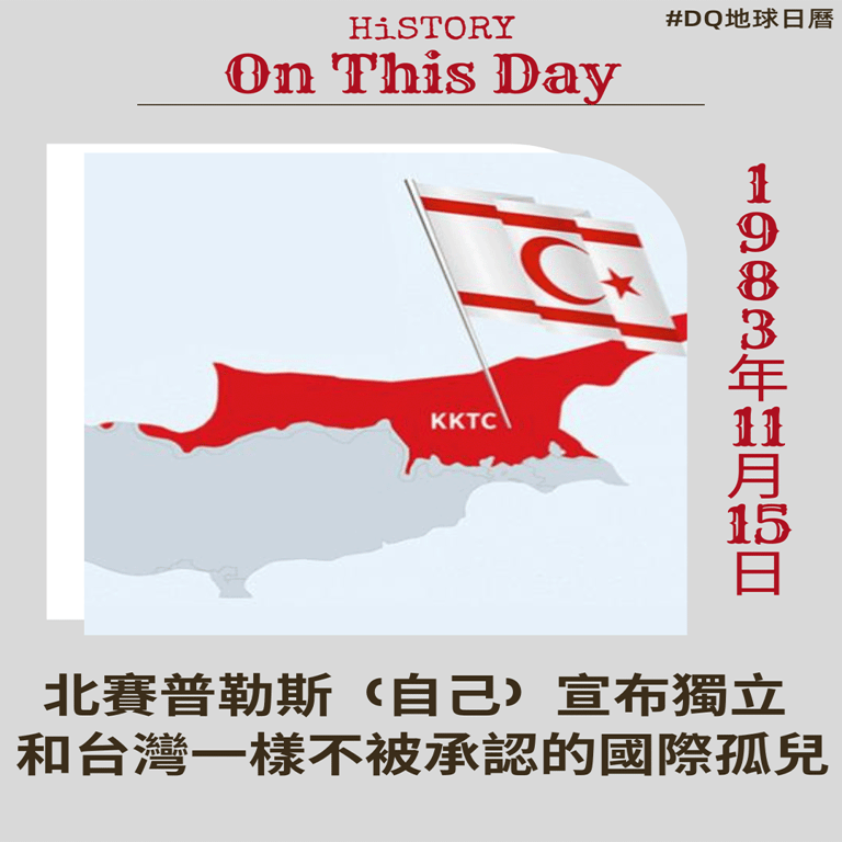 1983年11月15日|北賽普勒斯(自己)宣布獨立 和台灣一樣不被承認的國際孤兒